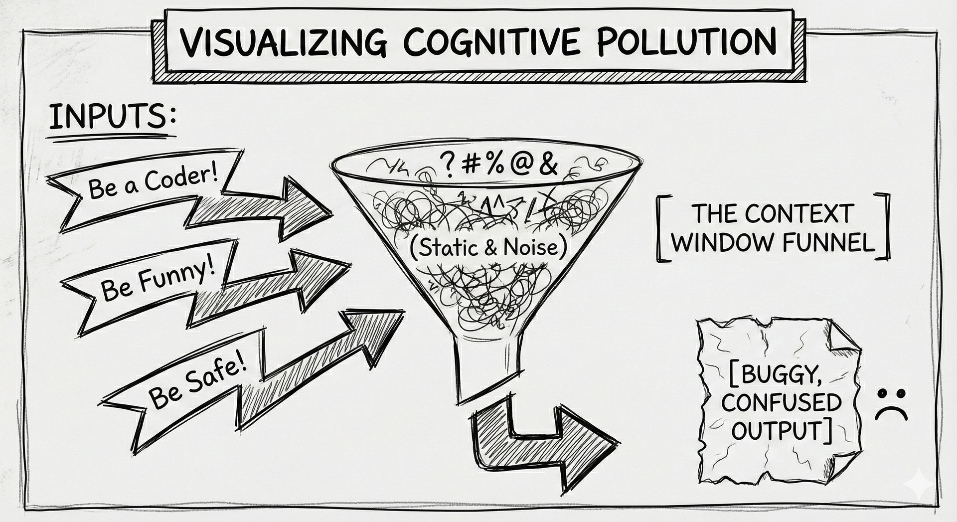 This is exactly what happens inside a context window when we use massive, bloated system prompts to force a model into being "everything".